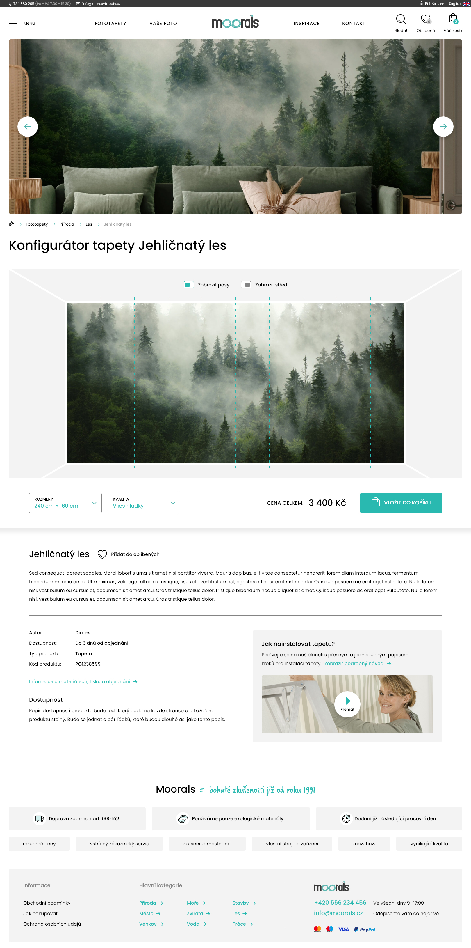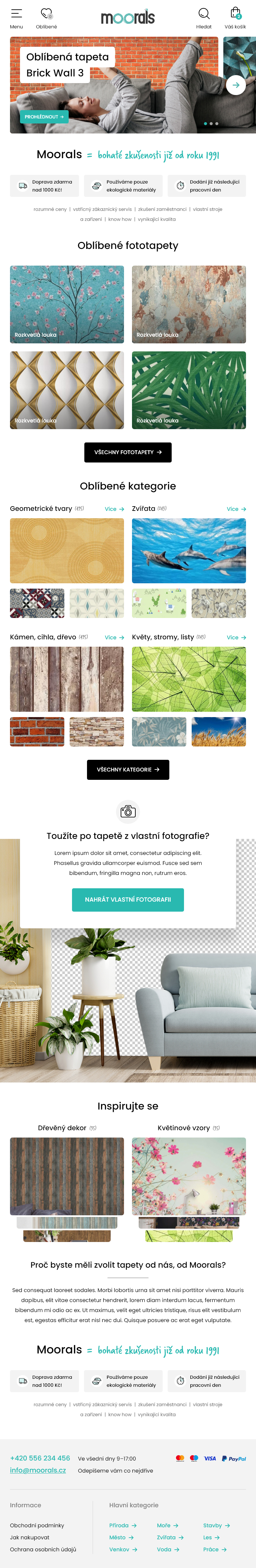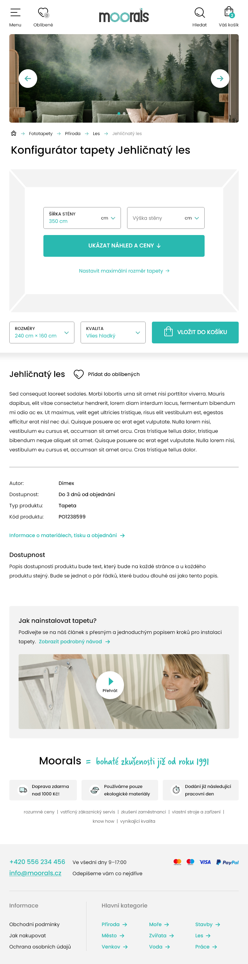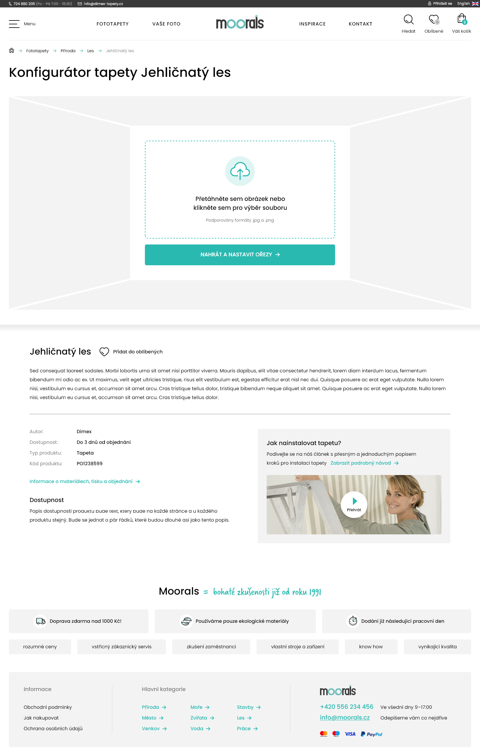 Moderní eshop, který se zabývá prodejem fototapet. Eshop obsahuje konfigurátor fototapet, ve kterém si můžete zadat vlastní řez (rozměry) a materiál.