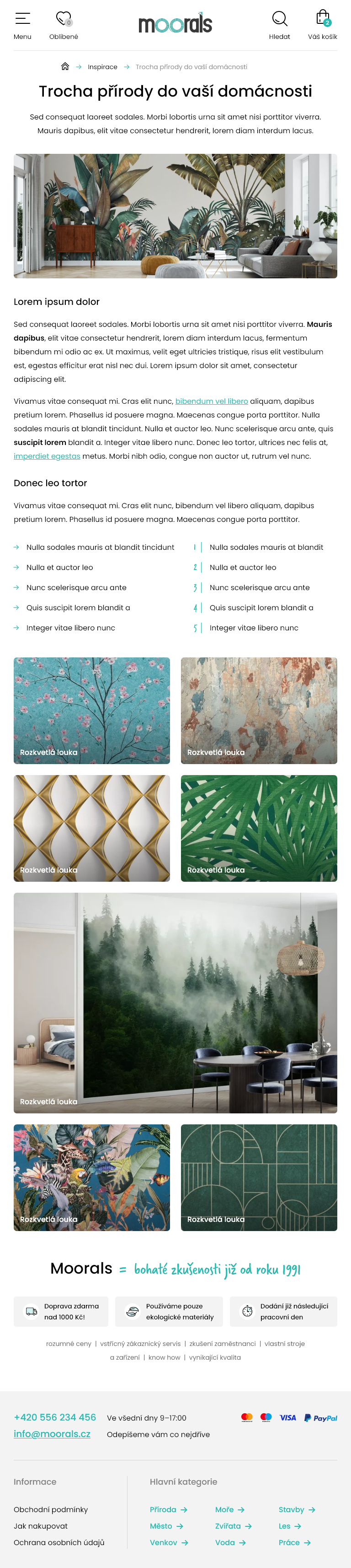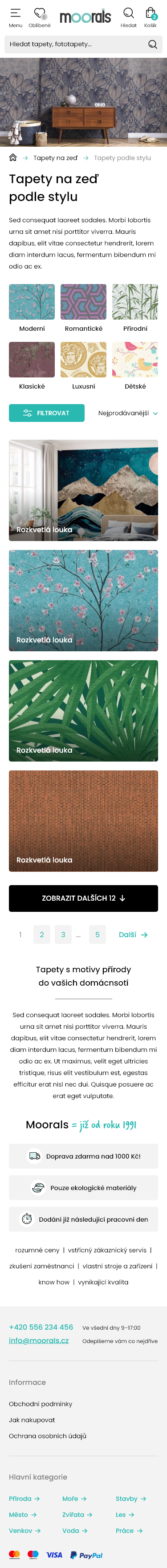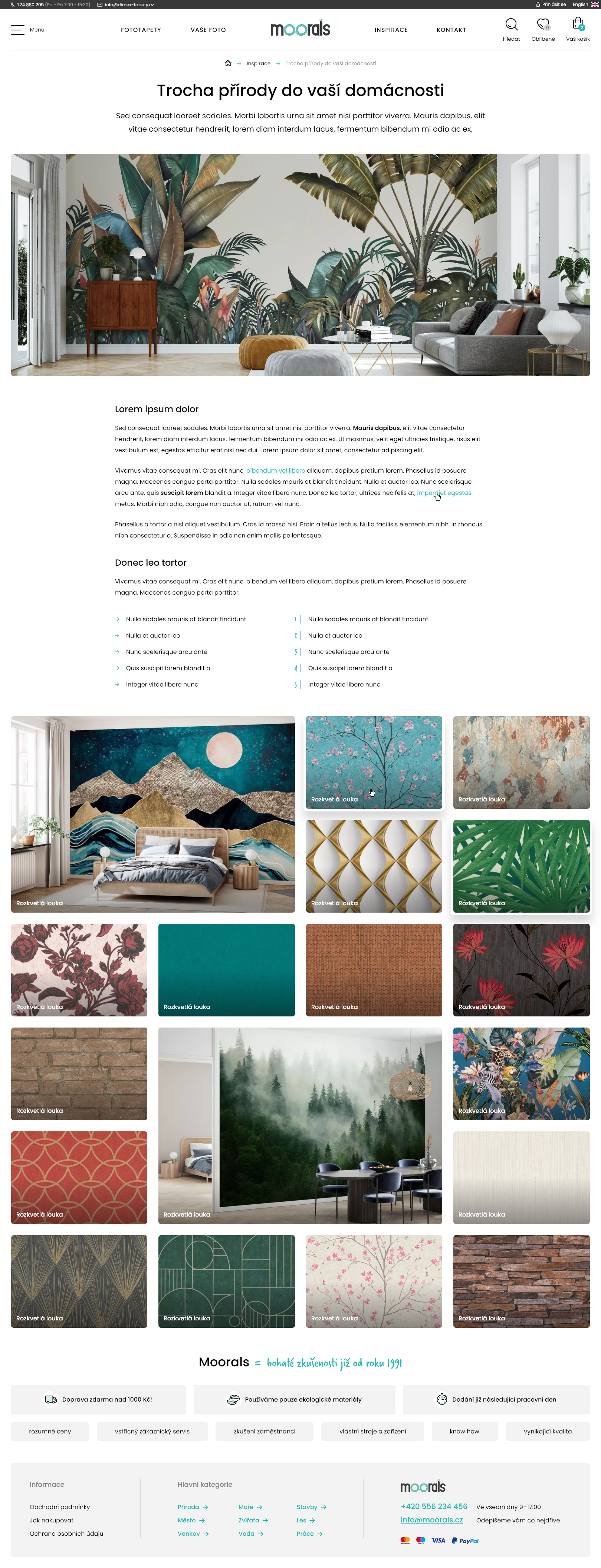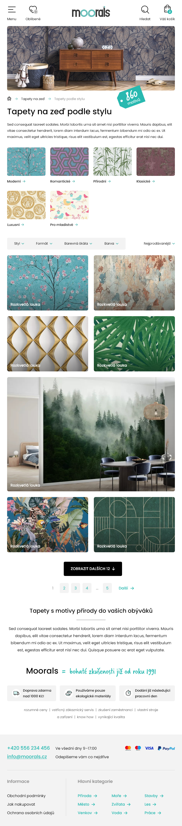 Moderní eshop, který se zabývá prodejem fototapet. Eshop obsahuje konfigurátor fototapet, ve kterém si můžete zadat vlastní řez (rozměry) a materiál.