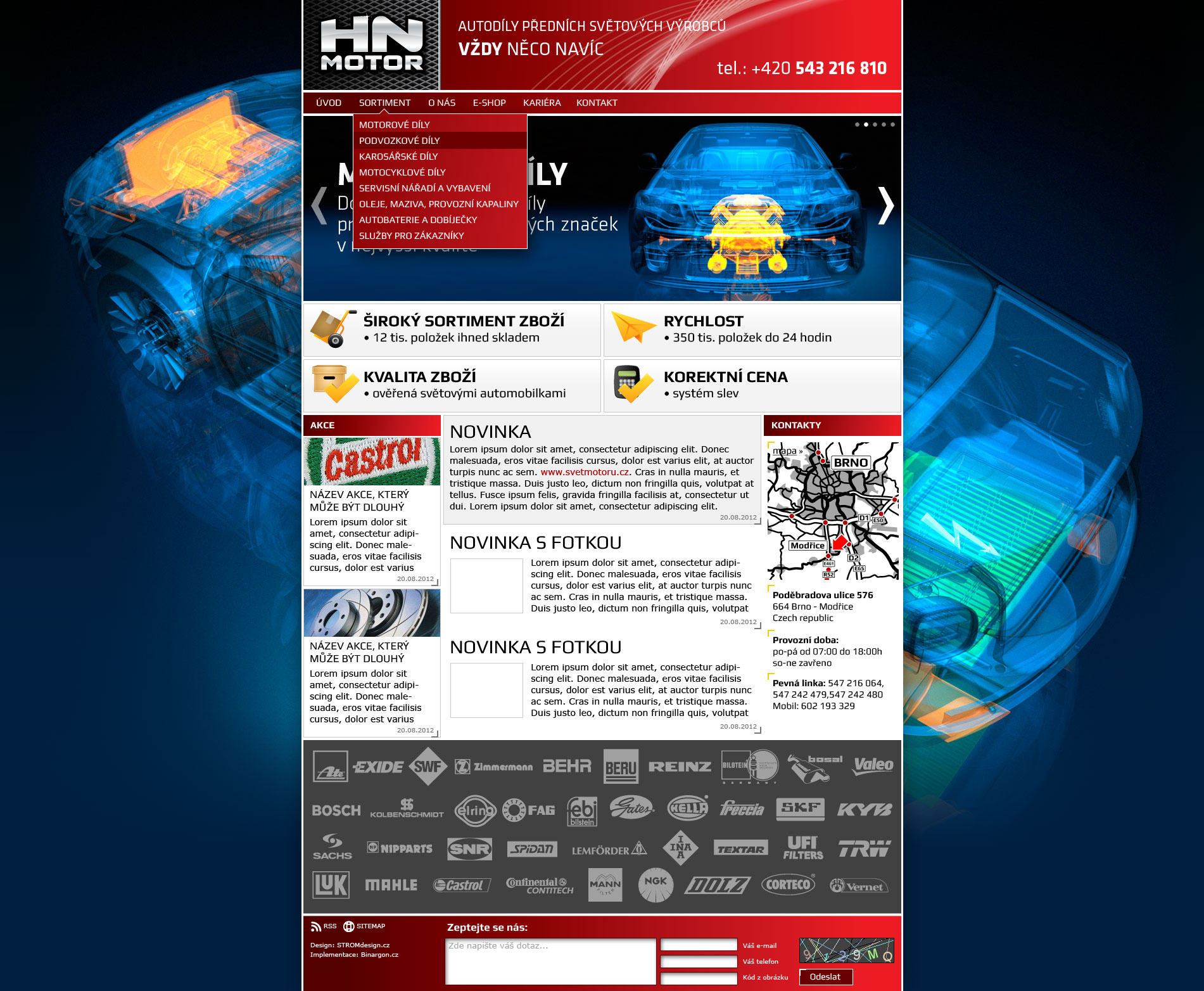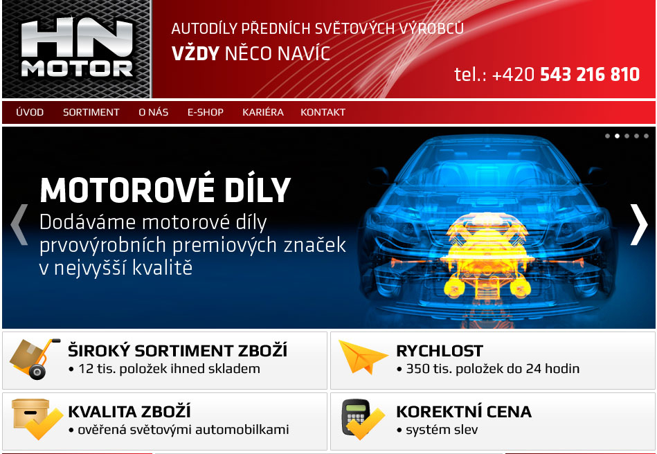 Společnost hnmotor na svém webu, který nadchne fanoušky automobilů, prodává autodíly předních světových výrobců.