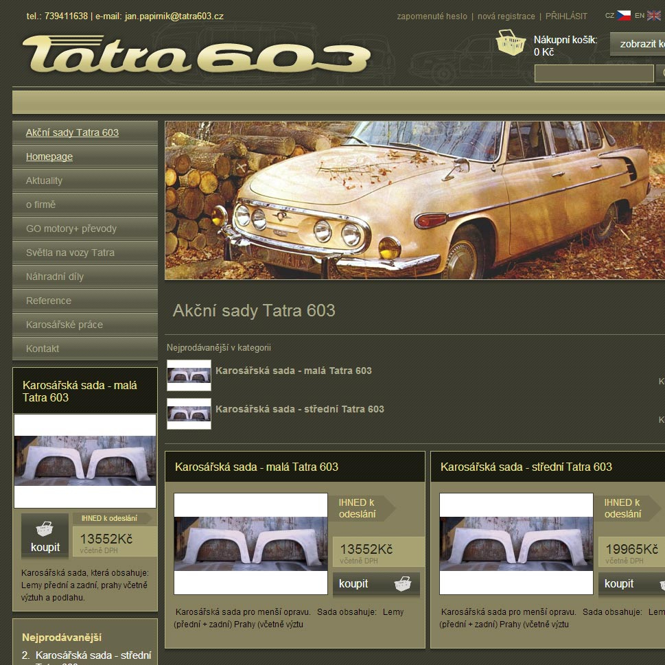 Internetová prezentace a eshop firmy věnující se renovacím vozů Tatra působí příjemně dobově.